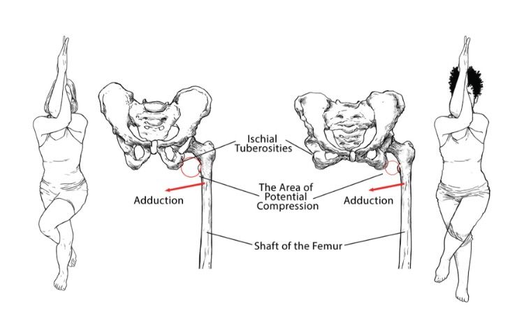 The distance between the greater trochanter and the ischial tuberosity determines whether this is even physically possible, yet it was strongly encouraged in a workshop I took in Kelowna, BC., with senior Iyengar teacher Ramanand Patel.
