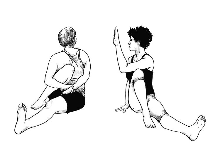 10. “Wrap the arm around the opposite leg and join the hands” in Marichyasana III (Seated Twist).