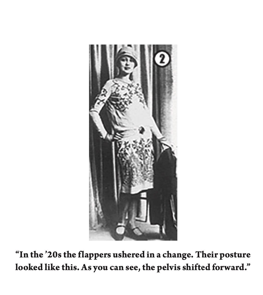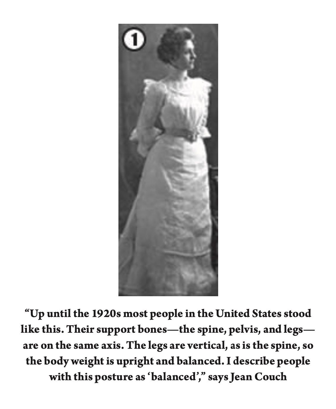 Then, it became fashionable for the first time to shift the weight on one leg and throw the hip out to the side with an implied rejection of strait-laced Victorian values. Photos of early settlers in the 19th century show people still standing tall with even weight on each leg (which yoga would call ‘Samastiti.’)